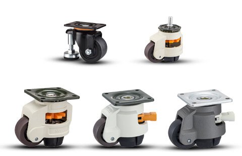 Combine wheels and adjustable feet in one unit. Easily move equipment, then lock it in place with solid support.